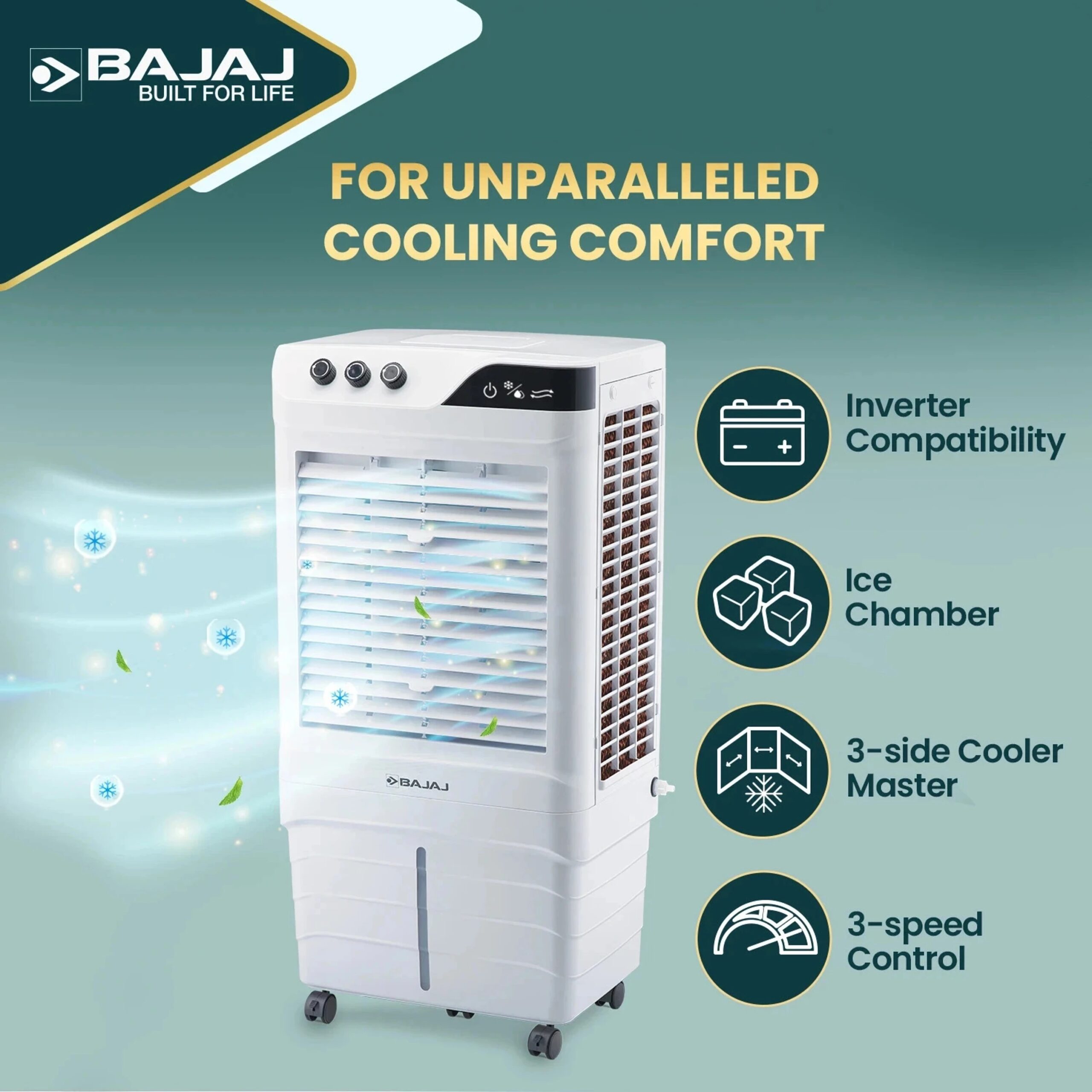 The Bajaj High Performance Air Cooler is designed to deliver powerful airflow and fast cooling for your home or office.
