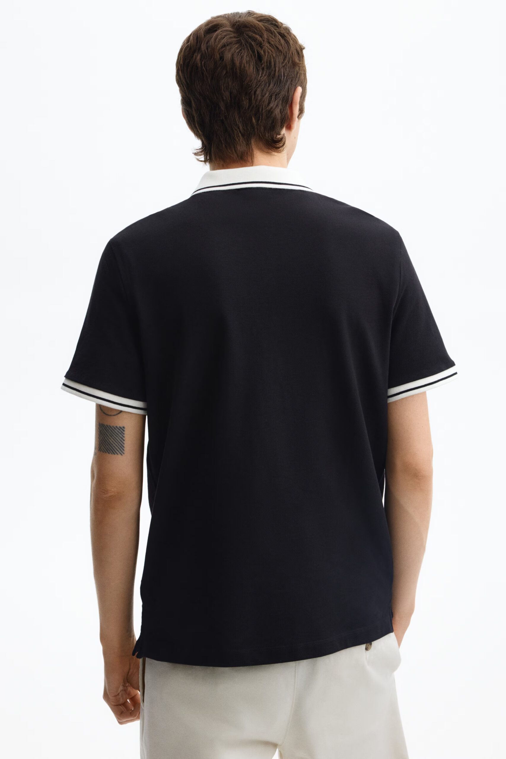 Upgrade your everyday style with this Premium Black Polo T-Shirt featuring a stylish white contrast collar and sleeve detailing.