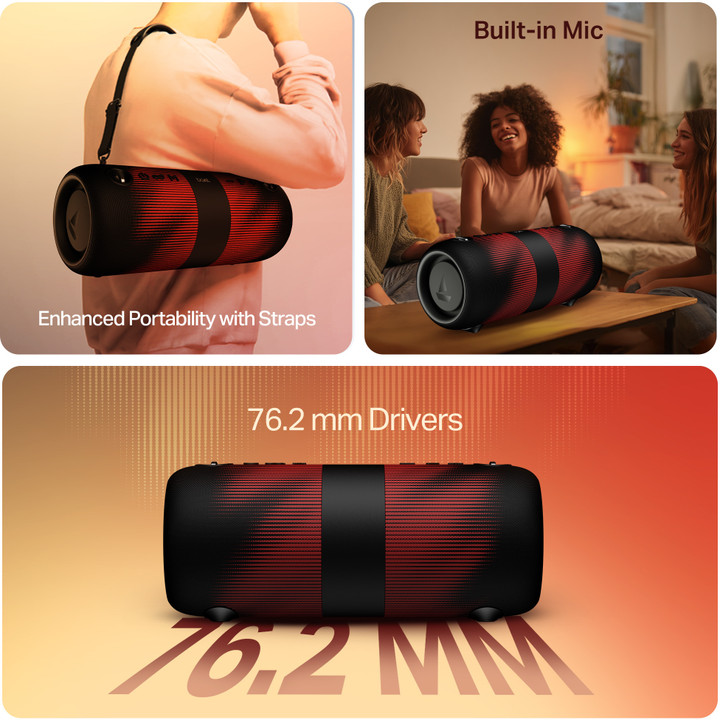 Upgrade your music experience with this powerful Portable Wireless Bluetooth Speaker designed for deep bass and crystal-clear HD sound. Its stylish red and black premium fabric finish gives a modern and sporty look, making it perfect for home, travel, parties, and outdoor use.