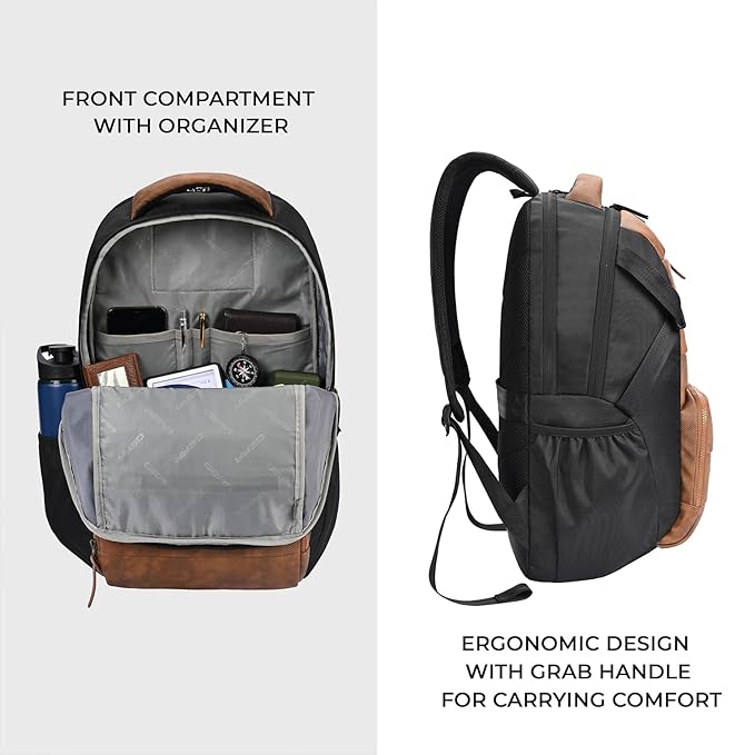 Upgrade your everyday style with this premium Brown & Black Laptop Backpack. Designed with a classy leather-finish front panel and durable fabric sides, this backpack offers the perfect combination of style, comfort, and functionality.