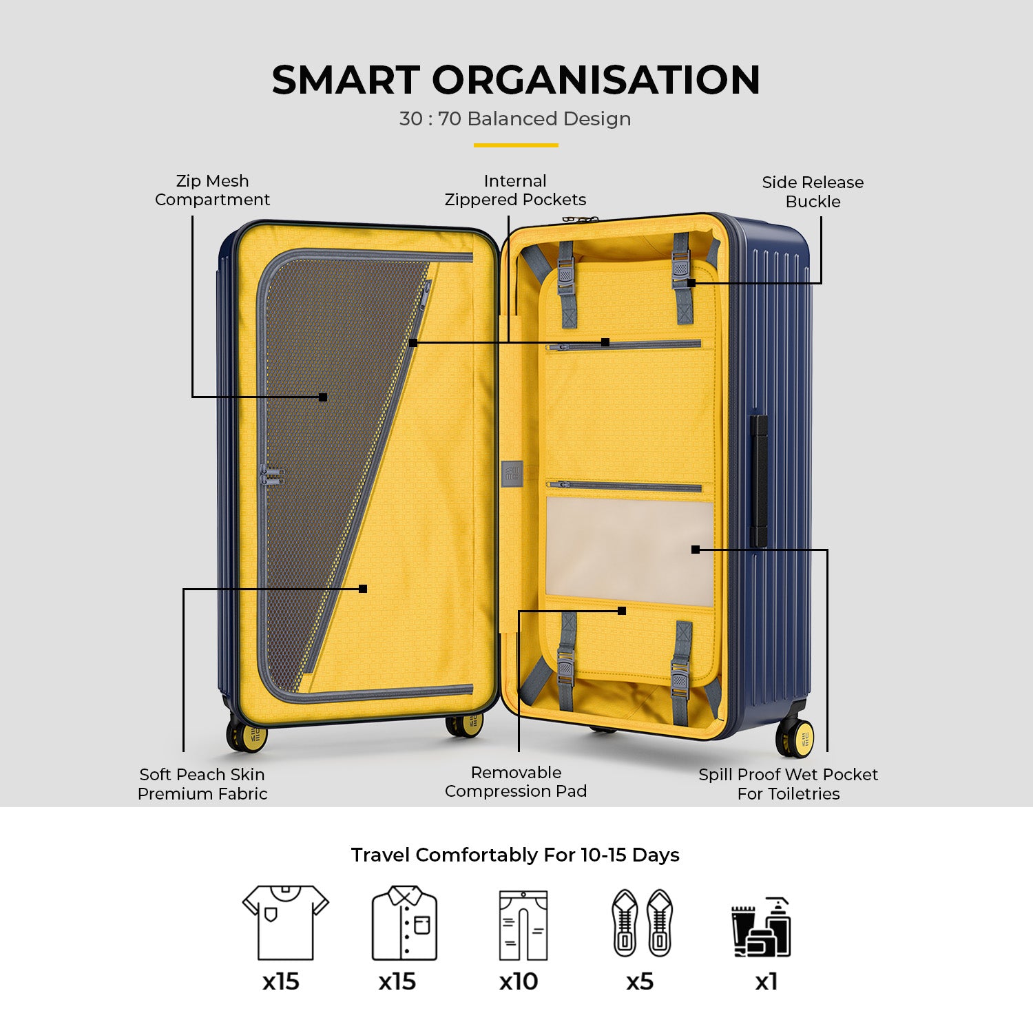 The πΊπΈ US.Street πΊπΈ Premium Navy Blue Hard Shell Trolley Bag is designed for modern travelers who want a strong build, premium finish, and smooth mobility.
